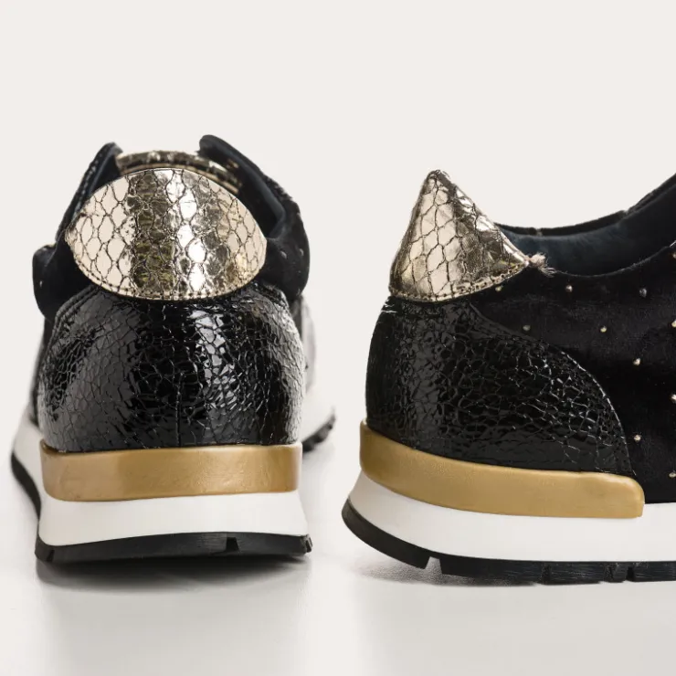 – Extérieur en cuir et tissu velours plumetis doré